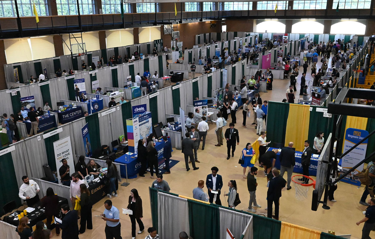 Health-Connect is our dedicated career fair for Nursing and Health Sciences majors, typically held each spring in the Kinesiology & Health Studies Gym.